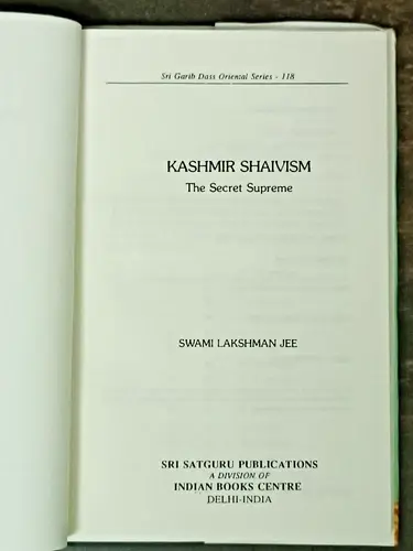 KASHMIR SHAIVISM: THE SECRET SUPREME BY SWAMI LAKSHMAN JEE Kundalini 1st ED