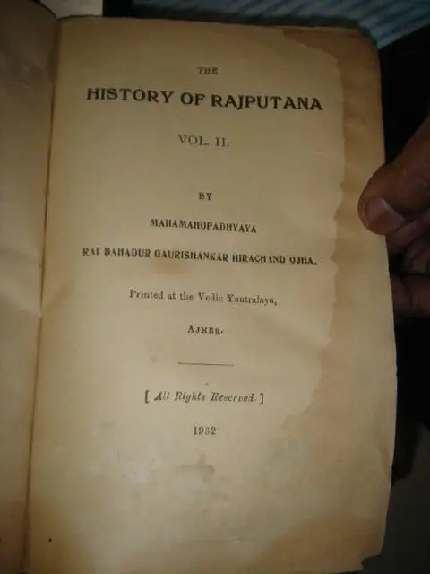 INDIA - THE HISTORY OF RAJPUTANA VOL II RAI BAHADUR GAURISHANKAR HIRACHAND OJHA