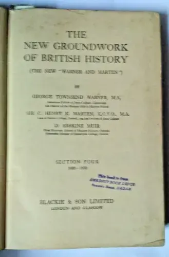 THE NEW GROUNDWORK OF BRITISH HISTORY BY WARNER MARTEN AND MUIR 1951 ILLUSTRATED