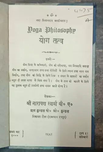 INDIA VINTAGE YOGA PHILOSOPHY: YOGA TATVA BY NARAYAN SWAMI FIRST ED 1951 HINDI