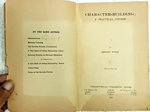 INDIA VINTAGE: CHARACTER BUILDING A PRACTICAL COURSE BY ERNEST WOOD 1922