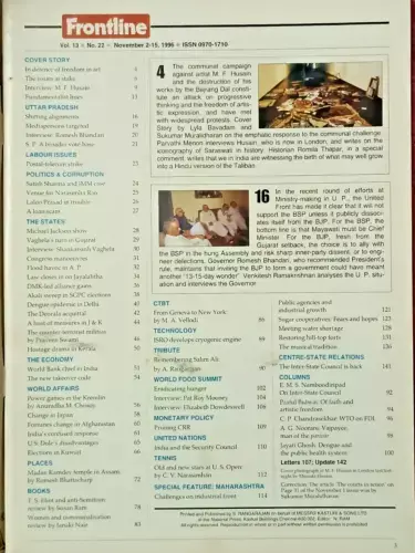 INDIA FRONTLINE MAGAZINE NOV 1996 AKALI PUNJAB, KASHMIR, M.F. HUSSIAN ART-COMMUN