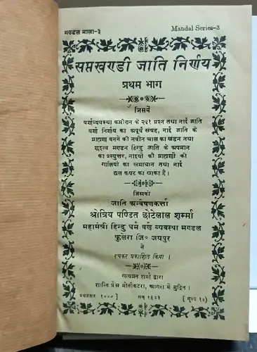 INDIA VINTAGE SAPTAKHANDI JATI NIRNAYA BY SHROTRIYA P. CHOTTEY LAL SHARMA 1923
