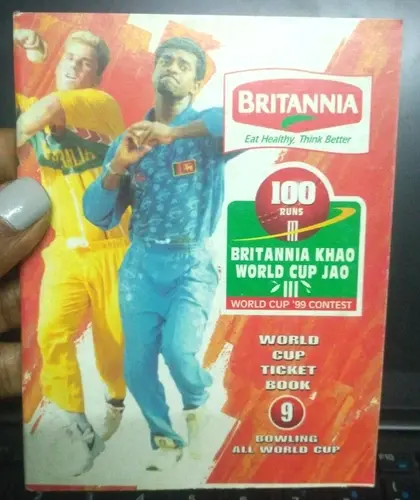 CRICKET : BRITANNIA WORLD CUP 1999 TICKET BOOK 9 BRITANNIA KHAO WORLD CUP JAO