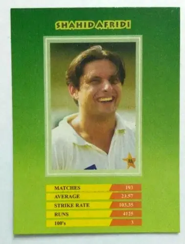 INDIA CRICKET CARD SHAHID AFRIDI WITH SPORTS DATA AND HOOK SHOOT