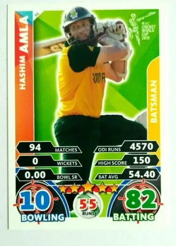INDIA ICC CRICKET WORLD CUP 2015 CRICKET ATTAX CARD HASHIM AMLA + 7 BASE