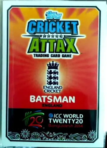 INDIA ICC WORLD CUP TWENTY 20 TOPPS CRICKET ATTAX 2014 ALEX HALES GOLD CARD