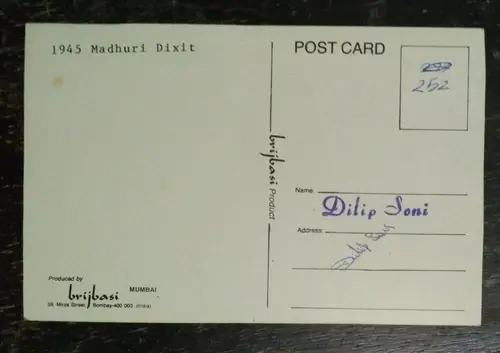INDIA FILM PICTURE POSTCARD MADHURI DIXIT BOLLYWOOD ACTRESS no. 1945