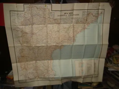 INDIA - ANDHRA PRADESH FOLDING COLOUR MAP 1978 CLOTH PASTED SIZE 36 " X 40 "