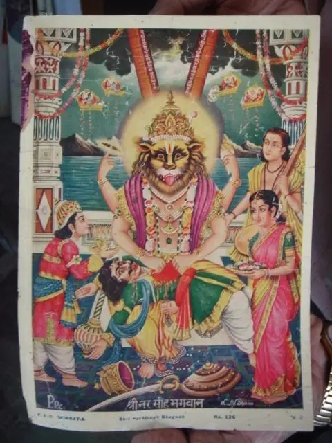 INDIA RARE HINDU RELIGIOUS PRINT SHRI NARSHINGH BHAGWAN - SIZE 9.3/4+" X 7 "