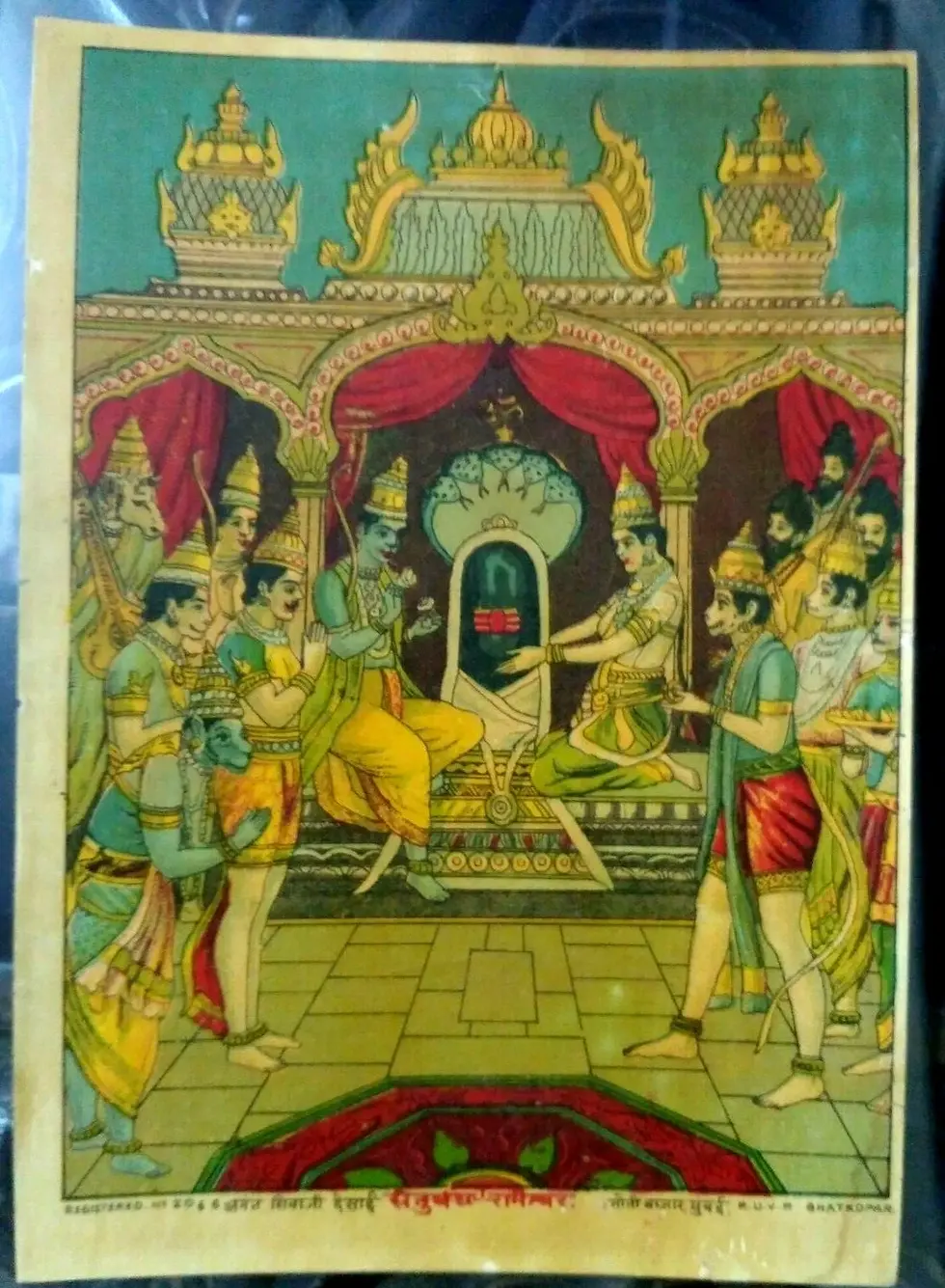 INDIA LITHO PRINT SETU BANDH RAMESHVARAM ( RAMAYANA) BY ANANT SHIVAJI DESAI