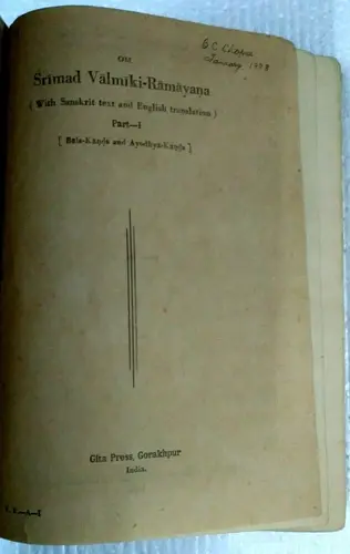 INDIA RELIGIOUS - SRIMAD VALMIKI RAMAYANA WITH SANSKRIT AND ENGLISH TRANS. 1974