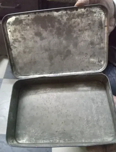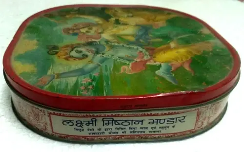 INDIA VINTAG TIN BOX WITH LITHO PRINT OF KRISHNA AND BALRAM WITH HOLY COW