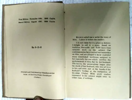 INDIA VINTAGE : THE STORY OF MIRA BAI BY BANKEY BIHARI 1937 ILLUS. WITH BAJANS