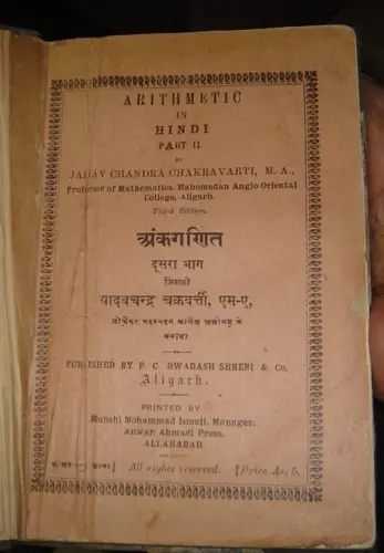 INDIA VERY OLD : Arithmetic - ANKGANIT IN HINDI PAGES 152