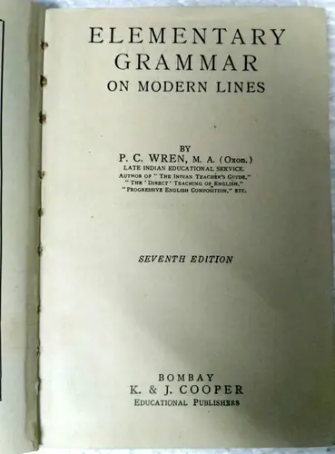 INDIA VINTAGE : ELEMENTARY GRAMMAR ON MODERN LINES BY P.C WREN 1930