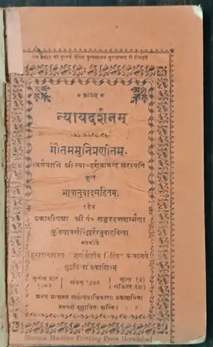 INDIA VINTAGE BOOK: NYAYDARSHNAM BY GAUTAM MUNI BHASHA ANUVAD SAHIT 1895
