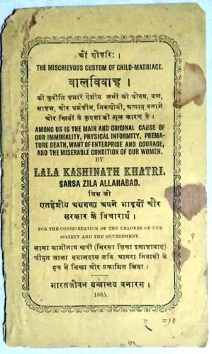INDIA: THE MISCHIEVOUS CUSTOM OF CHILD MARRIAGE BY LALA KASHINATH 1885 BAL VIVAH