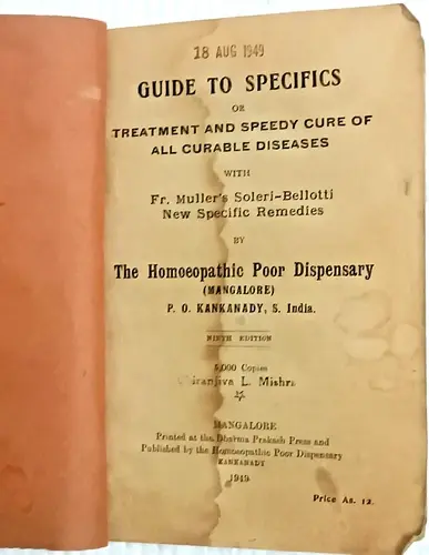 INDIA GUIDE TO SPECIFICS: TREATMENT & SPEEDY CURE WITH Fr. MULLER'S SOLERI 1949