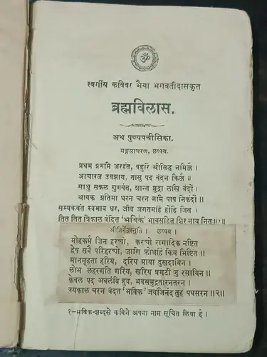 INDIA JAINISM: BRAHAMVILAS BY BHAIYA BHAGVATI DAS JI ILLUSTRATED HINDI 1926