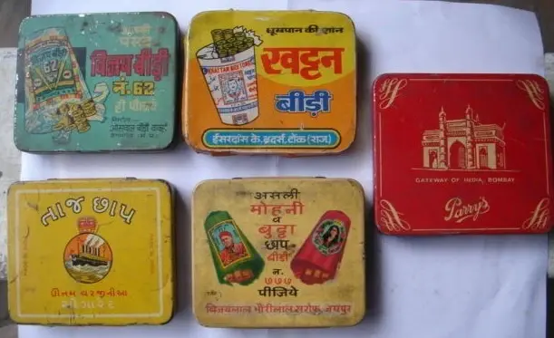INDIA - OLD BIDI EMPTY TIN BOX - 5 IN 1 LOT