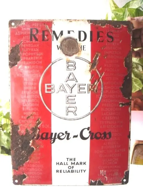 INDIA - OLD - PORCELAIN ENAMEL SIGN BOARD - BAYER - SIZE 14.3/4 " X 10.1/2 " .