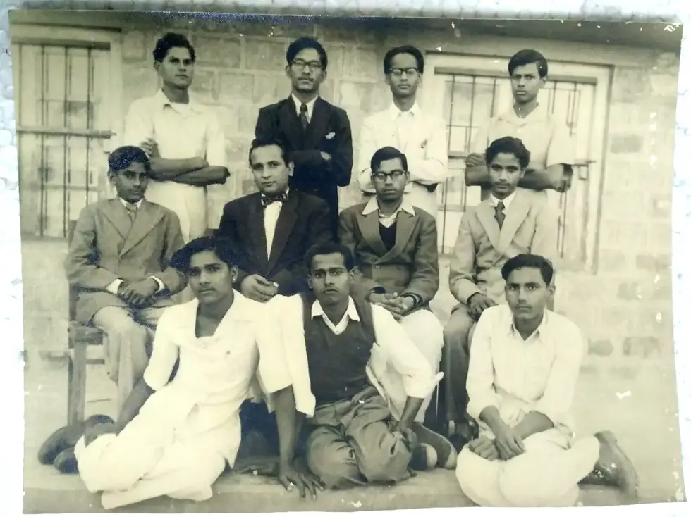 INDIA RARE PHOTOGRAPH OF COLLEGE TEACHER WITH HIS STUDENTS 7 1/2" X 5 3/4 "